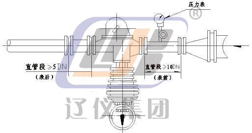 流量計(jì)是按節(jié)流元件,分流原理設(shè)計(jì)制造的;被測(cè)蒸汽進(jìn)入流量計(jì)主體后分為兩路,一路Q1通過節(jié)流孔板(此部分蒸汽不作計(jì)量),在孔板兩側(cè)產(chǎn)生壓差△P,在此壓差作用下,另一路Q2流經(jīng)噴嘴噴射在葉輪上,葉輪軸轉(zhuǎn)動(dòng)。為減慢葉輪軸轉(zhuǎn)速,葉輪軸下方按有阻尼葉片并浸沒在阻尼室內(nèi)水中。由于兩路有同一壓差△P,在規(guī)定流量范圍內(nèi),根據(jù)流體相似原理,兩路蒸汽流量Q1和Q2之間的比例關(guān)系基本為常量,這樣只要測(cè)出流經(jīng)噴嘴部分的流量Q2,即可知總流量Q。